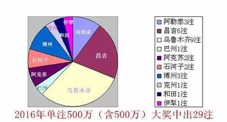 在“双色球9亿元大派奖”期间,新疆彩民共收获7注一等奖,其中4注采用复式投注,额外每注收获500万元派奖奖金,4注派奖奖金共计2000万元;二等奖中出72注,离派奖只差一点点幸运,特别是在“双色球”2016128期(中出12注二等奖)、2016133期(中出11注二等奖)、2016144期(中出14注二等奖)。在此次派奖活动中,可不要小看六等奖复式投注获5元派奖奖金,新疆区彩民采用复式投注中得六等奖共计2377238注,奖金合计1188.619万元。本次派奖活动,新疆区彩民额外获得3100多万元奖金,可喜可贺!派奖期间昌吉、乌鲁木齐彩民摘得头彩,昌吉彩民接连三期问鼎头奖,“双色球”2016131期单注奖金最高为1435.3816万元(含派奖奖金500万元)。2016年单张彩票最高中奖金额也出现在“双色球”9亿元派奖期间,在2016144期首府彩民一举中得3注一等奖,共囊括奖金3433.7916万元。